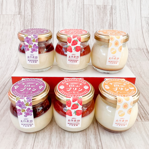 岡山プリン詰合せ(いちご・ぶどう・プレーン) 6個入