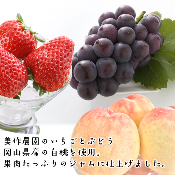 | 内容量 | あきひめジャム 1個 ぶどうジャム 1個 白桃ジャム 1箱 |